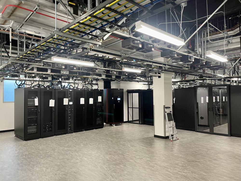 The new server room in the basement will be a 2,900 SF state-of-the art facility that can host both low-density and high-end servers, including direct-to-chip liquid-cooled solution. The room provides a mix of (18) high and (37) low density racks. Future flexibility will allow for additional high-density racks in the event that low-density racks are decommissioned within the existing space. High density racks will host various A100 and N100 nodes to support Artificial Intelligence research and education. The 1.2MW data server load at CSE requires 370 tons of cooling capacity provided by a 6”chilled water service tied to the campus loop. A secondary process loop and redundant pumps ensure consistent and adjustable temperatures specific to server operation by way of heat exchangers. Mechanical infrastructure is designed to support both in-rack and direct-to-chip cooling. Power distribution units are utilized to provide flexibility of 480V and 208V as required, also allowing for efficient monitoring and controlling individual components. The new server room will help meet the computing needs of the future, and will propel CSE into the new age of AI Computing.